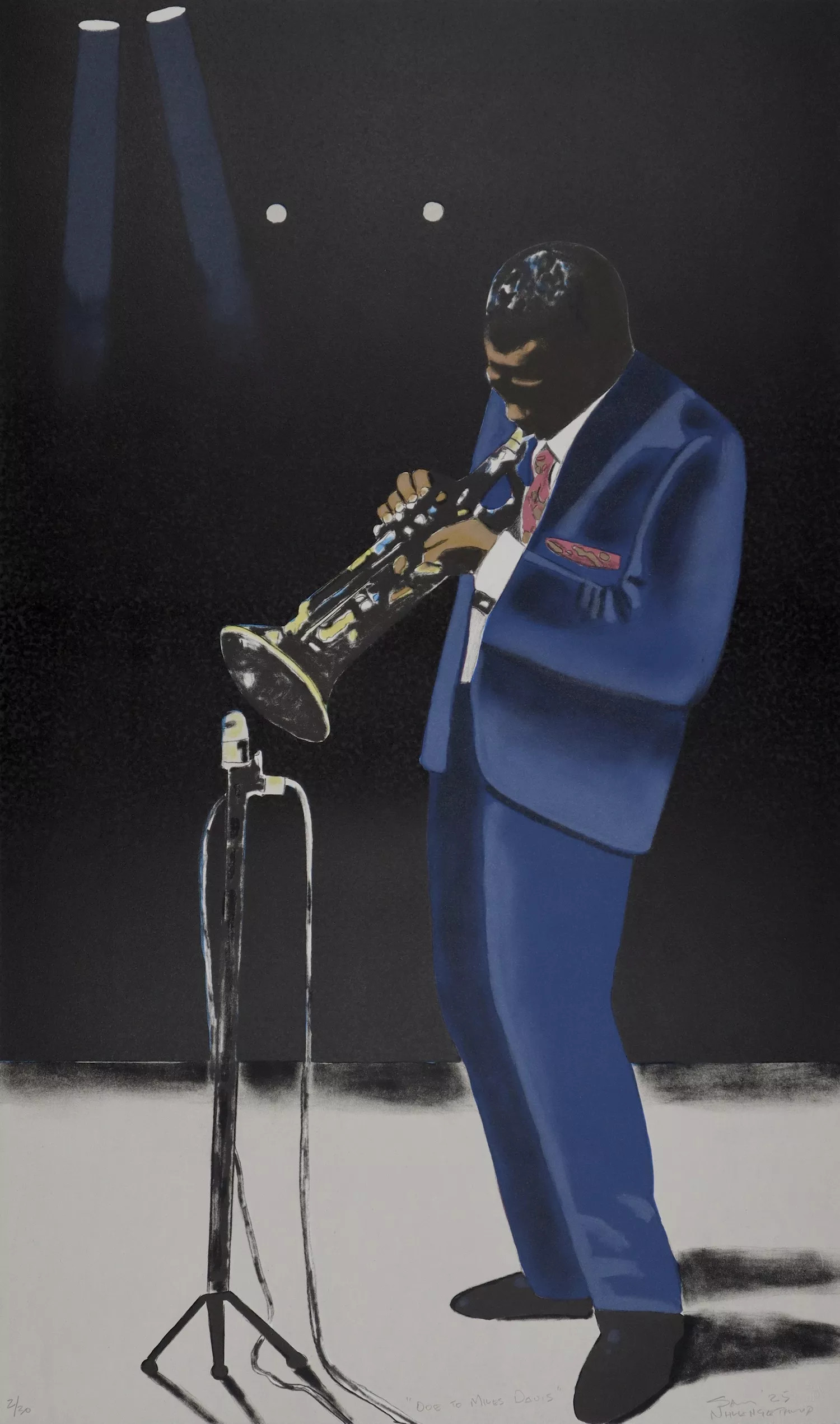 Inscription: (bottom left) 14/30; (bottom centre) "Ode to Miles Davis"; (bottom right) Sam Nhlengethwa 25